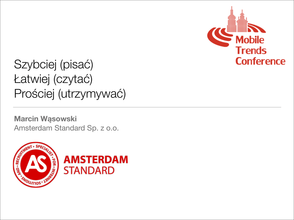 Szybciej (pisać) Łatwiej (czytać) Prościej (utrzymywać)