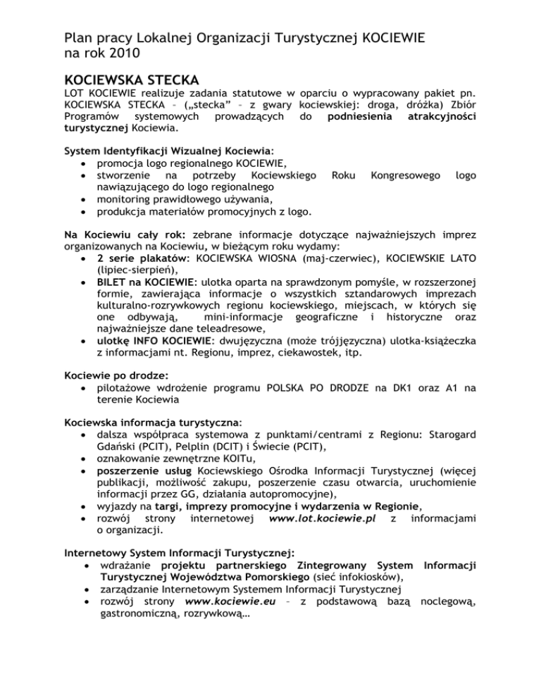 Plan pracy Lokalnej Organizacji Turystycznej KOCIEWIE na rok