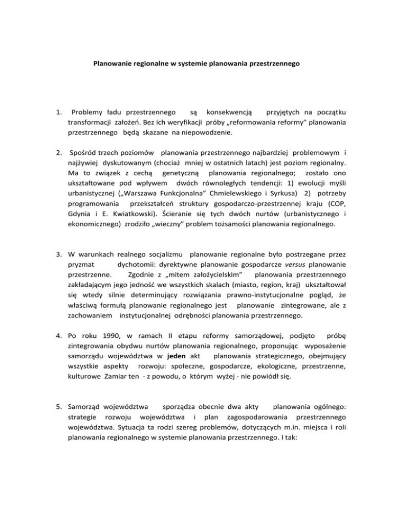 Planowanie regionalne w systemie planowania przestrzennego 1