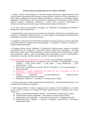 Zasady naboru do gimnazjum na rok szkolny 2016