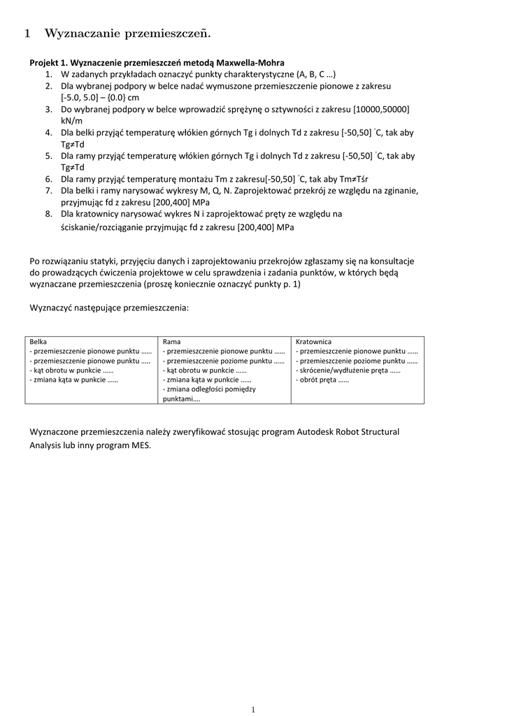 wyznaczane przemieszczenia (proszę koniecznie oznaczyć punkty p. 1)