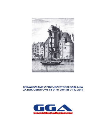 SPRAWOZDANIE Z PRZEJRZYSTOŚCI DZIAŁANIA ZA ROK OBROTOWY od 01-01-2014 do 31-12-2014 SPRAWOZDANIE Z PRZEJRZYSTOŚCI DZIAŁANIA GGA Sp. z o.o. ZA ROK OBROTOWY od 01-01-2014 do 31-12-2014 I. WSTĘP Sprawozdanie z przejrzystości działania GGA Sp. z o.o. zostało sporządzone i opublikowane na podstawie art. 88 Ustawy z dnia 7 maja 2009 r. o biegłych rewidentach i ich samorządzie, podmiotach uprawnionych do badania sprawozdań finansowych oraz o nadzorze publicznym (Dz. U. z dnia 22 lipca 2015 r. poz. 1011), jak również wymogami art. 40 Dyrektywy Unii Europejskiej nr 43 w sprawie ustawowych badań rocznych sprawozdań finansowych i skonsolidowanych sprawozdań finansowych. II. STRUKTURA WŁASNOŚCIOWA I FORMA PRAWNA Nazwa jednostki, forma prawna i adres siedziby: GGA Sp. z o.o. jest spółką z ograniczoną odpowiedzialnością z siedzibą w Gdańsku (80-034) przy ul. Królowej Jadwigi 137 D / 5 wpisaną na listę podmiotów uprawnionych do badania pod numerem 3385. Podstawa prawna działalności Spółka została zarejestrowana w Krajowym Rejestrze Sądowym prowadzonym przez Sąd Rejonowy w Gdańsku XII Wydział Gospodarczy KRS pod numerem 00000305711. Rejestracji dokonano 12 maja 2008 roku. Nr identyfikacji podatkowej (NIP): Nr rejestracji statystycznej (REGON): 583-305-46-37 220604549 Kapitał własny i udziałowcy Kapitał zakładowy GGA Sp. z o.o. na dzień 31-12-2014 r. wynosi 50.000,00 zł. Na dzień 31-12-2014 r. wspólnikami Spółki są: Tomasz Szanel – 51,00% udziałów, Karol Matwiejczyk – 49,00% udziałów. Zarząd Spółki Na dzień sporządzenia niniejszego sprawozdania skład Zarządu był następujący: Tomasz Szanel - Prezes Zarządu, Karol Matwiejczyk - Wiceprezes Zarządu. Przynależność do sieci GGA Sp. z o.o. nie należy do sieci skupiającej firmy audytorskie. doświadczenie, nowe technologie, sukces … III. STRUKTURA ZARZĄDZANIA Siedziba Spółki mieści się w Gdańsku. W Spółce stosowana jest matrycowa struktura zarządzania. Komórki organizacyjne są najczęściej doraźnymi zespołami roboczymi, ułożonymi w macierzy, która określona jest na zasadzie dwuwymiarowego grupowania. W strukturze organizacyjnej wyodrębnione są następujące działy główne: Dział audytu, Dział prowadzenia ksiąg, Dział administracji i marketingu. W ramach podstawowych działów funkcjonują również mniejsze subkomórki organizacyjne zorientowane specjalistycznie, jak również komórki interdyscyplinarne zorientowane zadaniowo lub projektowo. IV. SYSTEM KONTROLI JAKOŚCI GGA Sp. z o.o. posiada wdrożony system wewnętrznej kontroli jakości, zgodnie z wymaganiami wynikającymi z polskiego prawodawstwa odnoszącego się do podmiotów audytorskich, jak również standardami Krajowej Izby Biegłych Rewidentów oraz Międzynarodowymi Standardami Rewizji Finansowej. System zapewnienia jakości obejmuje wszelkie czynności rewizji finansowej oraz inne usługi realizowane zgodnie z przedmiotem działalności. Wewnętrzny system kontroli jakości oparty jest na następujących komponentach: zgodność ze standardami etycznymi, odpowiedzialność zarządu za zapewnienie wysokiej jakości usług, nacisk na szkolenie i podnoszenie kompetencji pracowników, koncentracja na jakości przeprowadzanych prac, jak również ich rezultatów i dokumentacji roboczej, stały monitoring systemu jakości, dbałość o przejrzyste relacje z klientami i współpracownikami. Procedury kontroli i zatwierdzania dokumentacji roboczej z badania sprawozdań finansowych oraz innych czynności zakończonych opinią certyfikującą koncentrują się na zapewnieniu stałego nadzoru jakościowego i mają za zadanie zapewnić wysoki poziom świadczonych usług. Odbywa się to między innymi poprzez: tworzenie specjalistycznych zespołów eksperckich o doświadczeniu i wiedzy zapewniającej wysoką jakość realizacji prac, system wewnętrznych konsultacji specjalistycznych, odpowiedzialność kluczowego biegłego rewidenta nadzorującego audyt za zapewnienie odpowiedniej jakości. System kontroli jakości jest traktowany priorytetowo w wewnętrznych procedurach obowiązujących w Spółce i opisany jest w dokumencie „System wewnętrznej kontroli jakości podmiotu uprawnionego do badań sprawozdań finansowych - GGA Sp. z o.o.”. GGA Sp. z o.o. oświadcza, iż system wewnętrznej kontroli jakości funkcjonuje skutecznie, zapewnia wysokie standardy świadczonych usług, jak również zgodność z prawem i normami etycznymi dotyczącymi działalności audytorskiej. doświadczenie, nowe technologie, sukces … V. KONTROLA KRAJOWEJ KOMISJI NADZORU Kwestie związane z kontrolami Krajowej Komisji Nadzoru, zostały uregulowane w Ustawie z dnia 7 maja 2009 r. o biegłych rewidentach i ich samorządzie, podmiotach uprawnionych do badania sprawozdań finansowych oraz o nadzorze publicznym (Dz. U. z dnia 22 lipca 2015 r. poz. 1011). W 2014 roku podmiot nie podlegał kontroli. VI. CZYNNOŚCI REWIZYJNE W JEDNOSTKACH ZAINTERESOWANIA PUBLICZNEGO Wykaz jednostek zainteresowania publicznego badanych przez GGA Sp. z o.o. w roku obrotowym zakończonym 31-12-2014 r.: TRANS POLONIA S.A. – Tczew, EUROTEL S.A. – Gdańsk. VII. POLITYKA ZAPEWNIENIA NIEZALEŻNOŚCI GGA Sp. z o.o. oświadcza, że w Spółce wdrożona jest polityka zapewniająca zachowanie niezależności zgodnie z Ustawą z dnia 7 maja 2009 r. o biegłych rewidentach i ich samorządzie, podmiotach uprawnionych do badania sprawozdań finansowych oraz o nadzorze publicznym (Dz. U. z dnia 22 lipca 2015 r. poz. 1011) jak również kodeksem etyki zawodowej IFAC. Polityka zapewnienia niezależności opisana jest w dokumencie „System wewnętrznej kontroli jakości podmiotu uprawnionego do badań sprawozdań finansowych - GGA Sp. z o.o.”. Spółka jako podmiot uprawniony do badania sprawozdań finansowych przed przyjęciem zlecenia na czynności rewizji finansowej każdorazowo sprawdza czy nie zachodzą okoliczności, które powodowałyby niedotrzymanie 