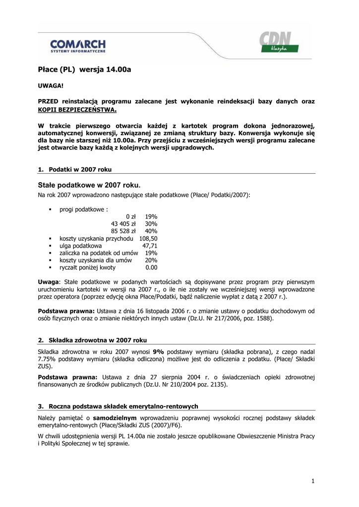 Płace (PL) wersja 14.00a Stałe podatkowe w 2007 roku.