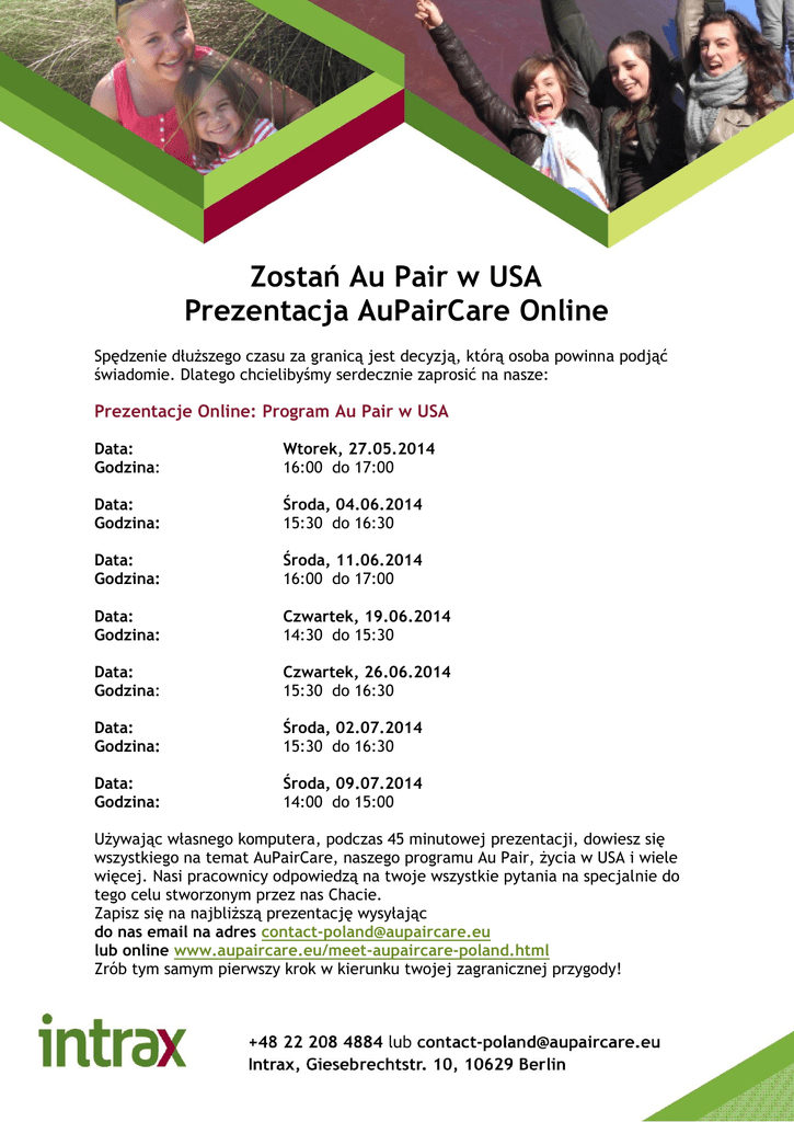 Zostań Au Pair w USA Prezentacja AuPairCare Online