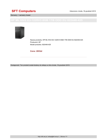 SFT Computers Utworzono: środa, 16 grudzień 2015 Serwery > serwery tower HP ML10V2 E3-1220V3 8GB 1TB ODD EU 822448-425 Nazwa produktu: HP ML10V2 E3-1220V3 8GB 1TB ODD EU 822448-425 Producent: HP Model produktu: 822448-425 Cena: 2653zł Dostępność: Ten produkt został dodany do sklepu w dniu środa, 16 grudzień 2015 http://sft.net.pl | [email protected] | | Strona 1/1