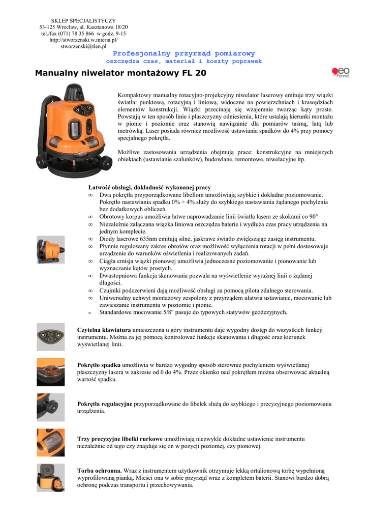 Manualny niwelator montaŜowy FL 20