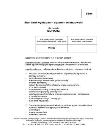91 /m Standard wymagań – egzamin mistrzowski MURARZ