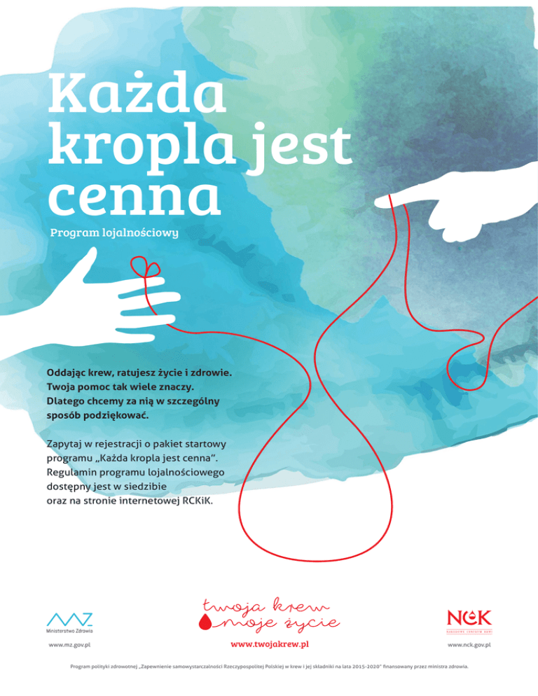 Każda kropla jest cenna Program lojalnościowy 2GGDMÄFNUHZUDWXMHV]Ļ\FLHL]GURZLH 7ZRMDSRPRFWDNZLHOH]QDF]\ 'ODWHJRFKFHP\]DQLÄZV]F]HJ²OQ\ VSRV²ESRG]LØNRZDÆ Zapytaj w rejestracji o pakiet startowy programT ś*aķda kropla jest cennaŚ. 1egTlamin programT lojalnoĖciowego dostÔpny jest w siedzibie oraz na stronie internetowej 1C*i*. www.mz.gov.pl www.nck.gov.pl Program polityki zdrowotnej śZapewnienie samowystarczalnoĖci 1zeczypospolitej Polskiej w krew i jej skýadniki na lata Ś ƥnansowany przez ministra zdrowia.