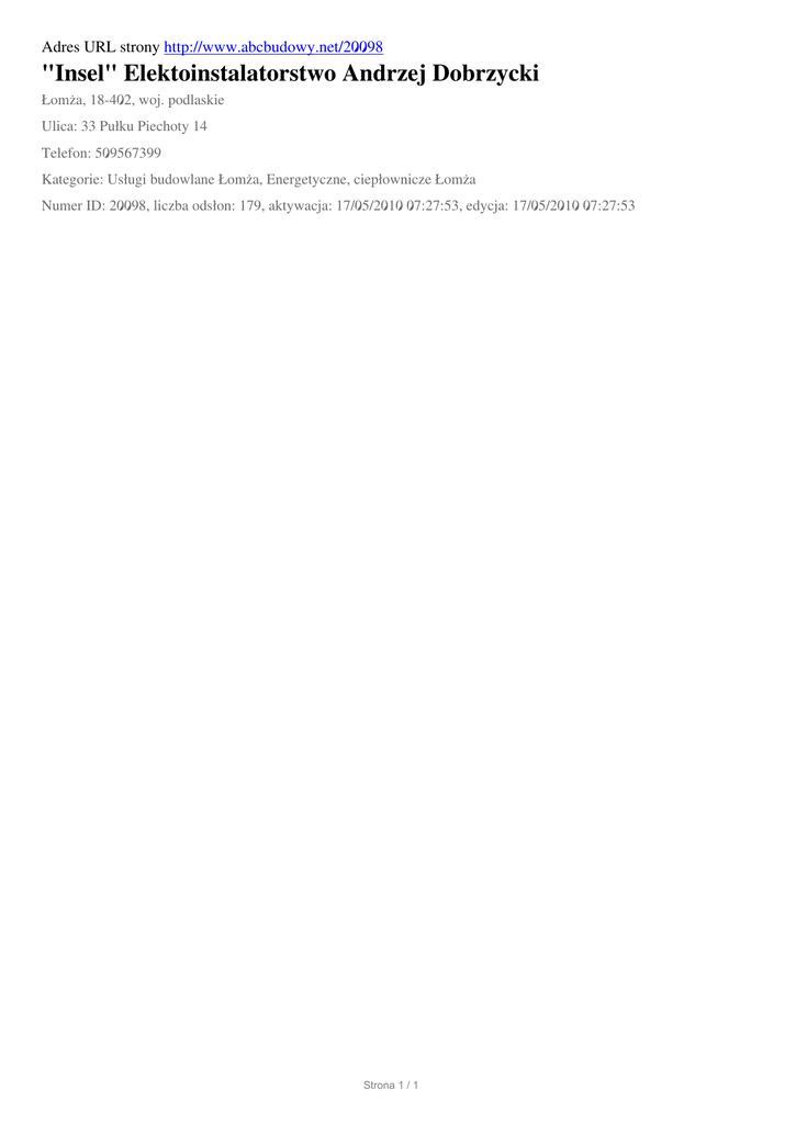 "Insel" Elektoinstalatorstwo Andrzej Dobrzycki