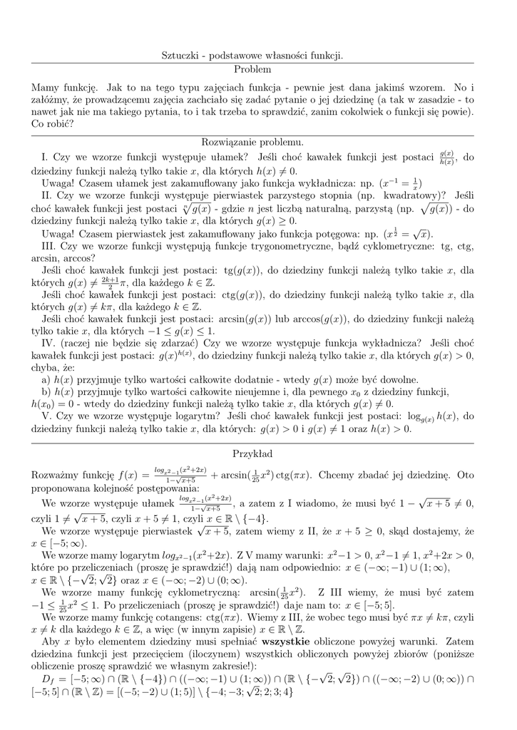 Sztuczki - podstawowe własności funkcji.