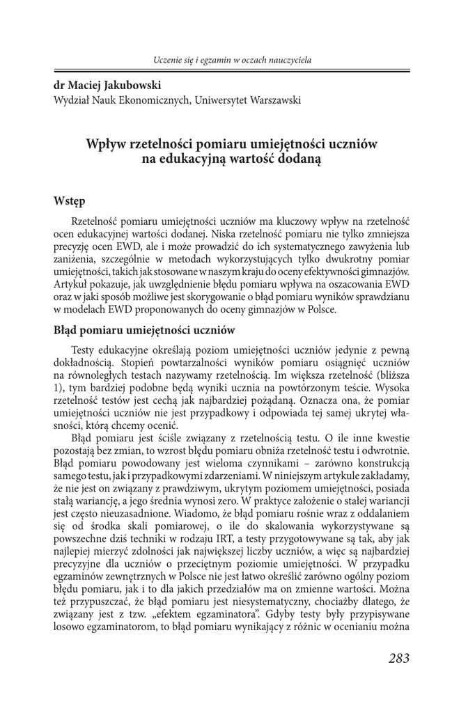 Wpływ rzetelności pomiaru umiejętności uczniów na edukacyjną