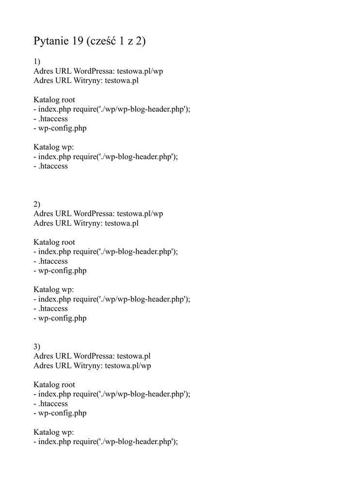 Adres URL WordPressa: testowa.pl/wp