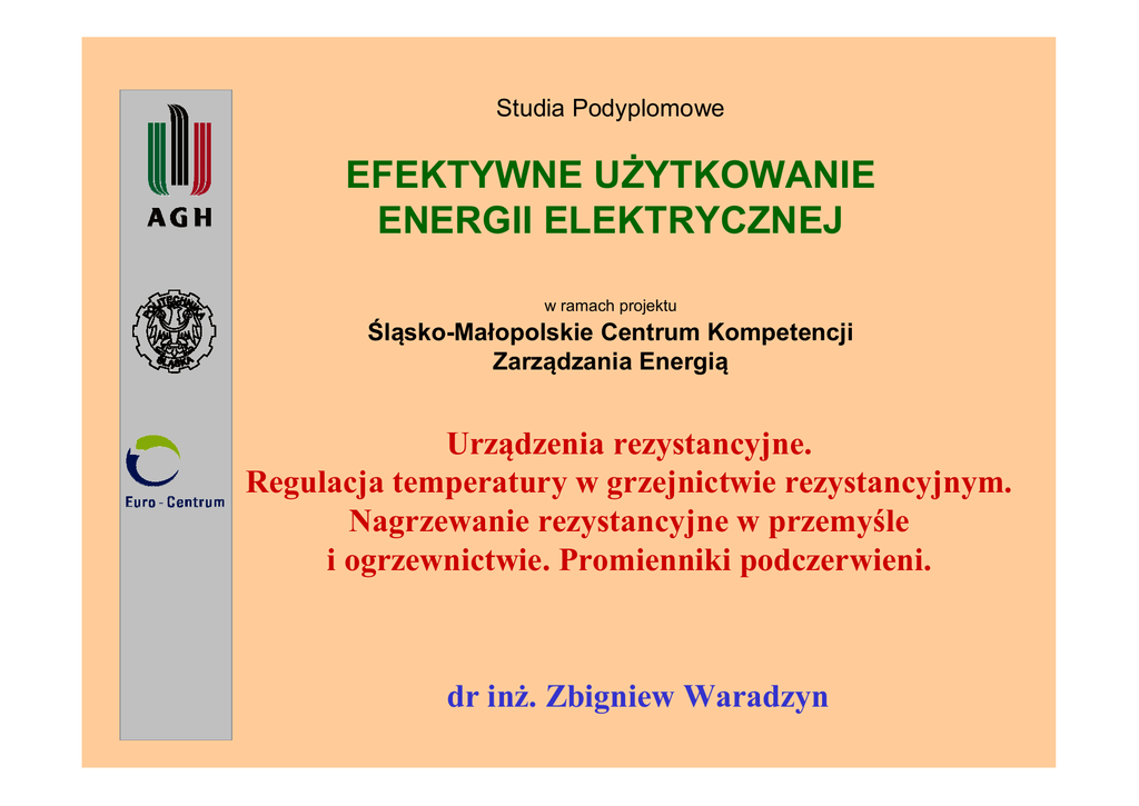 Urządzenia rezystancyjne. Regulacja temperatury w grzejnictwie
