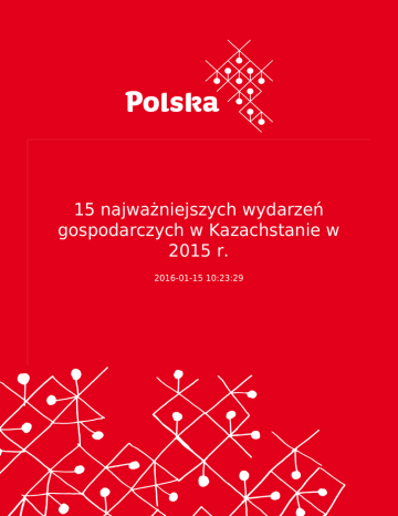 15 najważniejszych wydarzeń gospodarczych w Kazachstanie w 2015 r. 2016-01-15 10:23:29 2 15 najważniejszych wydarzeń gospodarczych w Kazachstanie w 2015 r. Ministerstwo Gospodarki Narodowej RK sporządziło listę 15 najważniejszych wydarzeń gospodarczych w Kazachstanie w 2015 r. Należą do nich: 1. Wstąpienie Kazachstanu do WTO W dniu 30 listopada 2105 r. Kazachstan oficjalnie został 162 członkiem Światowej Organizacji Handlu. Wydarzenie to ma kluczowe znaczenie dla gospodarczego rozwoju kraju. Kazachstańska gospodarka uzyskała szerszy dostęp do światowych rynków zbytu, a także szansę na modernizację i rozwój przemysłu. 2. 41 miejsce w rankingu Doing Business W 2015 r. Kazachstan uplasował się na 41 miejscu wśród 189 krajów biorących udział w rankingu. Wg „Doing Business” Kazachstan jest krajem, który przeprowadził najwięcej, bo aż 19 reform w siedmiu spośród dziesięciu gałęzi gospodarki. Kazachstan był wyróżniony przede wszystkim za poprawę klimatu biznesowego, uproszczenie procedur uzyskania pozwolenia na budowę i za pozytywne zmiany w handlu zagranicznym. 3. Awans Kazachstanu w Globalnym rankingu konkurencyjności 2015-2016 W corocznym rankingu konkurencyjności publikowanym przez Światowe Forum Ekonomiczne Kazachstan zajął 42 miesce. W stosunku do zeszłorocznego rankingu jest to awans o 8 pozycji. W rankingu wzięły udział 140 kraje. Wśród państw WNP liderem wciąż pozostaje Azerbejdżan (40 miejsce), za nim plasuje się Kazachstan (42 miejsce) i Rosja (45 miejsce). 4. Zwiększenie udziału Kazachstanu w Euroazjatyckim procesie integracyjnym W dniu 1 stycznia 2015 r. działalność rozpoczęła nowa organizacja międzynarodowa – Euroazjatycka Unia Gospodarcza (EaUG). Pełnoprawnymi członkami EaUG są Armenia, Białoruś, Kazachstan, Kirgistan i Rosja. 5. Podpisanie memorandum o współpracy między RK i Organizacją Współpracy Gospodarczej i Rozwoju (OECD) W dniu 22 stycznia 2015 r. podczas Światowego Forum Ekonomicznego w Davos podpisane zostało memorandum o współpracy Kazachstanu z krajami OCDE. Celem wspólnego programu jest znalezienie płaszczyzn wielostronnej współpracy, w ramach której Kazachstan będzie mógł uczestniczyć w pracach OECD w latach 2014-2016. 6. Astańskie Forum Ekonomiczne W dniach 21-22 maja 2015 r. odbyło się Astańskie Forum Ekonomiczne (AFE). Wiodącym tematem ubiegłorocznej edycji Forum było: „Infrastruktura - siła napędowa stabilnego wzrostu gospodarki”, w tym: kapitał 3 ludzki, zielona gospodarka i innowacje, biznes i rynek kapitałowy, integracja i gospodarka światowa, infrastruktura. W Forum wzięło udział ponad 6400 uczestników, w tym ponad 1300 zagranicznych gości z 103 krajów. 7. Podpisanie umowy o utworzeniu Azjatyckiego Banku Inwestycji Infrastrukturalnych (AIIB) W dniu 29 czerwca 2015 r. w Pekinie odbyła się ceremonia podpisania aktu założycielskiego AIIB. Akt został podpisany przez 50 krajów. Podstawowym celem utworzenia AIIB jest współpraca w sferze rozwoju infrastruktury i wzrostu dobrobytu w Azji, a także finansowanie socjalno-gospodarczych projektów w regionie. 8. Przyjęcie ustawy „ O wprowadzaniu zmian i nowelizacji niektórych aktów prawnych Republiki Kazachstanu w sprawach dotyczących regulacji działalności handlowej”, podpisanej przez prezydenta w dniu 27 października 2015 r. Celem przyjęcia ustawy jest doskonalenie przepisów prawnych dotyczących handlu wewnętrznego, zagranicznego i elektronicznego, jak również działalności giełdowej. 9. Przyjęcie ustawy „O partnerstwie publiczno-prywatnym”, podpisanej przez prezydenta w dniu 31 października 2015r. Dokument reguluje problemy partnerstwa publiczno-prywatnego. Ministerstwo Gospodarki Narodowej wraz ze spółką akcyjną „Kazachstańskie centrum partnerstwa publiczno-prywatnego”, organami państwowymi i akimatami zorganizowało ponad 70 spotkań edukacyjnych mających na celu zachęcenie inwestorów do wzięcia udziału w programie. 10. Przyjęcie ustawy „ O wprowadzaniu zmian i nowelizacji niektórych aktów prawnych Republiki Kazachstanu w sprawach dotyczących rozwoju samorządów lokalnych”, podpisanej przez prezydenta w dniu 2 listopada 2015 r. Ustawa pozwoli zwiększyć udział obywateli w procesie podejmowania decyzji na szczeblach lokalnych, a także zwiększy samodzielność organów samorządowych. 11. Przyjęcie ustawy „O wprowadzaniu zmian i nowelizacji w kodeksie ziemskim”, podpisanej przez prezydenta w dniu 2 listopada 2015 r. Celem ustawy jest zapewnienie efektywnego i racjonalnego wykorzystywania gruntów rolnych. Przy realizacji tego planu mają pomóc mechanizmy ukierunkowane na prywatyzację gruntów. 12. Przyjęcie ustawy „O samoregulacji oraz o wprowadzeniu zmian i nowelizacji niektórych aktów prawnych Republiki Kazachstanu w sprawach dotyczących samoregulacji”, podpisanej przez prezydenta w dniu 12 listopada 2015 r. Ustawa ta reguluje stosunki społeczne , związane z samoregulacją podmiotów działalności gospodarczej i 4 profesjonalnej na terenie Kazachstanu. Określa również warunki tworzenia i funkcjonowania organizacji samoregulujących, uczestniczenia w nich, jak również ich umocowanie prawne. 13. Przyjęcie ustawy „O wprowadzeniu zmian i nowelizacji niektórych aktów prawnych Republiki Kazachstanu w sprawach dotyczących opodatkowania i administracji celnej”, podpisanej przez prezydenta w dniu 3 grudnia 2015 r. Przyjęcie ustawy dotyczącej opodatkowania i administracji celnej ma pomóc w stworzeniu sprzyjającego klimatu dla biznesu, realizacji strategicznych celów państwa i polepszeniu warunków do dalszego rozwoju socjalnoekonomicznego. 14. W dniu 8 listopada 2015 r. Państwowa Służba Statystyczna Kazachstanu obchodziła swoje 95lecie Państwowa Służba Statystyczna RK uzyskała status jednej z najważniejszych organizacji, która dostarcza aktualnych informacji statystycznych zarówno organom państwowy