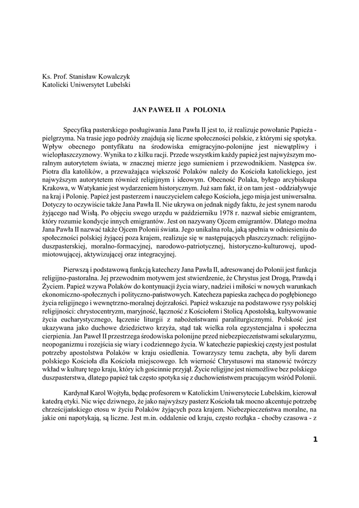 1 Ks. Prof. Stanisªaw Kowalczyk Katolicki Uniwersytet Lubelski JAN