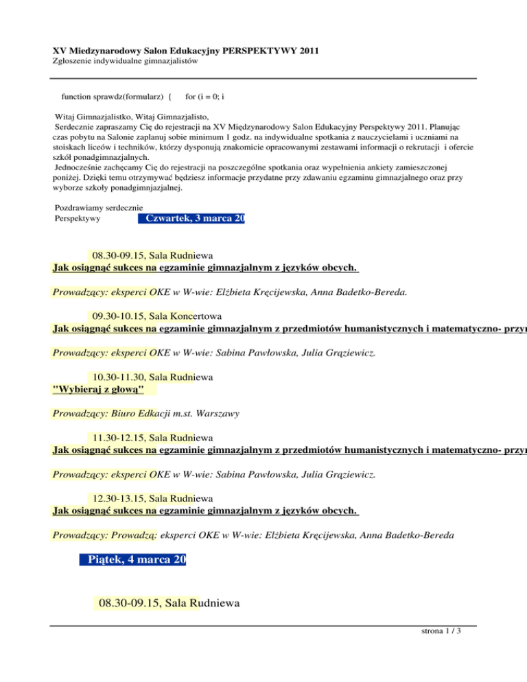 czas pobytu na Salonie zaplanuj sobie minimum 1 godz. na indywidualne spotkania z nauczycielami i uczniami na