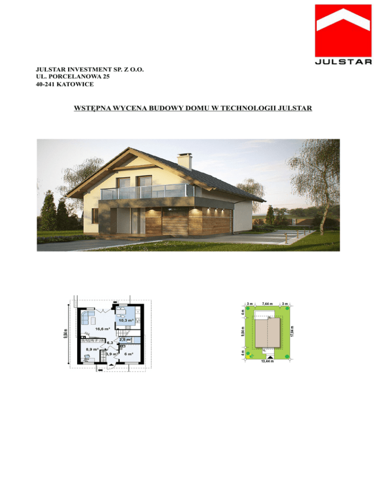 WSTĘPNA WYCENA BUDOWY DOMU W TECHNOLOGII JULSTAR