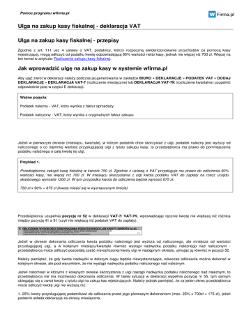Ulga na zakup kasy fiskalnej - deklaracja VAT - Pomoc