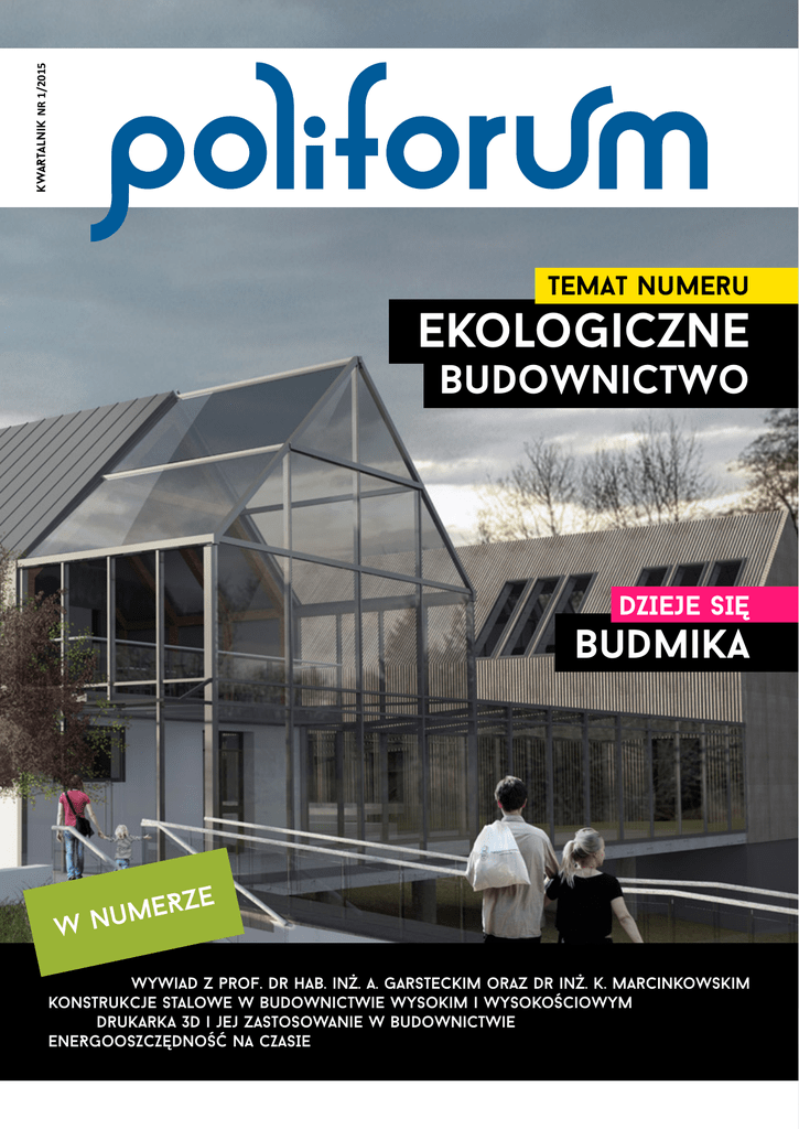 KWARTAlnik NR 1/2015 TEMAT NuMEru ekologiczne budownictwo DZIEJE SIĘ budmika ze meR u n W wywiad z prof. dr hab. inż. a. garsteckim oraz dr inż. k. marcinkowskim konstrukcje stalowe w budownictwie wysokim i wysokościowym drukarka 3d i jej zastosowanie w budownictwie ENERGooSZCZĘDNoŚĆ NA CZASIE o co chodzi? w poliforum Szanowni Czytelnicy, Mamy zaszczyt przedstawić Wam pierwszy numer pierwszego ogólnopolskiego naukowego magazynu studenckiego Poliforum. Jest to czasopismo tworzone przez studentów dla studentów, którego również i Ty możesz być współautorem. Pozwólcie, że w kilku zdaniach przedstawimy Wam ideę jaka nam przyświeca, innymi słowy: O co chodzi w Poliforum?! Pierwszym krokiem było zorganizowanie Budmiki (www.budmika.put.poznan.pl), konferencji na którą raz do roku zjadą Koła naukowe z najaktywniejszymi studentami budownictwa, inżynierii i architektury z całej Polski. Pierwszy krok (Budmika 2014) jak zawsze był trudny, ale zakończył się sukcesem. Ilość młodych, ambitnych ludzi, którym „chce się chcieć” zaskoczyła nawet nas - organizatorów. Chcąc integrować i aktywizować Was, najaktywniejszych studentów, pomyśleliśmy „spotkać się raz do roku to trochę za mało, pozwólmy im się wykazać przez cały rok”. Tak oto trzymacie w rękach platformę/środek/sposób na pokazanie innym co Was interesuje, jaki temat zgłębiliście, do jakich wniosków doszliście w obszarze swojego kierunku studiów i nie tylko. Jak będzie tworzone Poliforum? Przez Was – studentów oraz członków kół naukowych! W radzie naukowej zasiadać będą wszyscy opiekunowie kół, którzy wyrażą chęć swojej pomocy. Autorem artykułu może być każdy student, studentka czy zespół studentów kierunków budownictwa, inżynierii środowiska, architektury oraz im pokrewnych. Słówko techniczne. Pragniemy, aby Poliforum ukazywało się jako kwartalnik elektroniczny. Pod każdym artykułem zamieścimy nazwisko autora, koło naukowe, z którego się wywodzi oraz macierzystą uczelnię. Mamy nadzieję, że wszystkie koła naukowe zaproponują nam pomoc w edycji i składzie Poliforum. Jesteśmy otwarci na wszelkie sugestie i pomysły, a na każde pytanie odpowiemy z wielką przyjemnością, więc piszcie proszę do nas: [email protected] Podsumowując, pierwszy numer to dopiero początek, redakcja to otwarta księga, do której każdy może się wpisać, a chodzi o to, by aktywni i ambitni studenci mieli własne medium! Tomasz Garbowski Przewodniczący Komitetu Naukowego Budowlany magazyn studencki „POLIFORUM” Dawid Sinacki Redaktor naczelny 3 Wydawca AR CoMPRINT ul. H. Rzepeckiej 26A Poznań Nakład 350 szt. ISBN 978-83-89333-64-3 [email protected] Zespół redakcyjny Komitet naukowy Redaktor naczelny: Dawid Sinacki Z-ca Redaktora naczelnego: Anna Lenkowska Przewodniczący komitetu: Tomasz Garbowski z-ca przewodniczącego komitetu: Anna Knitter-piątkowska Redakcja: Alicja Zimniak Artur Tomczak Jakub Turbakiewicz JoANNA oLESZEK MArCIN MArKoWSKI Michał Babiak Błażej Gwozdowski Łukasz Polus Skład, grafika i okładka: Alicja Zimniak Magdalena Malepszak Karolina Zielińska Edycja: Tomasz Wojnowski zdjęcie okładki: marta sowińska, łukasz gąska zdjęcie wnętrza okładki: Alicja Zimniak pierwszy numer powstał we współpracy koło naukowe studentów architektury pp 4 Budowlany magazyn studencki „POLIFORUM” W Numerze dzieje się! 6 Konferencje 7 Aktualności 9 Wywiad 11 Strzecha 16 Domy gliniane 20 DoM 27 Drukarka 3D 30 Konstrukcje Stalowe 32 Na czasie 36 Torkret 40 GDzie kończy się wizja architekta 41 Taran hydrauliczny 43 Energooszczędne budynki 47 Bibliografia 50 budmika 2014, czyli poznańska recepta na konferencję budowlaną Budownictwo; Inżynieria Środowiska Nowe inwestycje Prof. dr hab. inż. A. Garstecki i dr inż. K. Marcinkowski Starożytne pokrycie z zadatkami na materiał jutra O ekologicznym budownictwie i technologii wykonania Pasywny, autonomiczny, zielony oraz jej zastosowanie w budownictwie W budownictwie wysokim i wysokościowym Energooszczędność 25-lecie tradycji prosto ze Swarzędza A zaczyna rzeczywistość (męka konstruktora)... a wentylacja i klimatyzacja Grafik i zdjęć Budowlany magazyn studencki „POLIFORUM” 5 dzieje się! budmika 2014, CZYLI poZNAŃSKA rECEpTA NA KoNFErENCJĘ BuDoWLANĄ W dniach 23-25.04.2014 w Politechnice Poznańskiej odbyła się I Ogólnopolska Studencka Konferencja Budowlana Budmika 2014. Przez trzy dni stolica Wielkopolski stała się centrum akademickiej myśli inżynierskiej, goszcząc u siebie reprezentantów aż 18 uczelni technicznych z całej Polski. O randze i powadze przedsięwzięcia świadczył m.in. patronat honorowy Jego Magnificencji Rektora Politechniki Poznańskiej prof. dra hab. inż. Tomasza Łodygowskiego oraz Prezydenta Miasta Poznania Ryszarda Grobelnego. W 2013 roku Koło Naukowe Studentów Budownictwa postanowiło podjąć się realizacji wspomnianego wydarzenia, tworząc przestrzeń dla ambitnych studentów umożliwiającą swobodną wymianę poglądów, wiedzy czy doświadczeń. Intensywne roczne przygotowania, silna promocja oraz jasno określony cel sprawiły, że Budmika 2014 odniosła sukces przerastający oczekiwania nawet samych organizatorów. Odzew na rozesłane zaproszenia do udziału w konferencji napływał z całej Polski sprawiając, że do udziału w konkursie referatów zgłoszono ponad 140 prac, z czego 115 zostało zaprezentowanych podczas konferencji. Nieszablonowe tematy, interesujące prezentacje oraz profesjonalne podejście prelegentów spowodowały, że po większości prelekcji rozwijały się żywe dyskusje. Konferencję uświetnili swoją obecnością oraz przewodem merytorycznym podczas wykładów plenarnych znamienici goście: dr inż. Zbigniew Kacprzyk (Politechnika Warszawska), dr hab. inż. Magdalena Rucka (Politechnika Gdańska) oraz dr hab. inż. Krzysztof Zieliński, prof. nadzw. PP (Politechnika Poznańska). Wysoki pozi