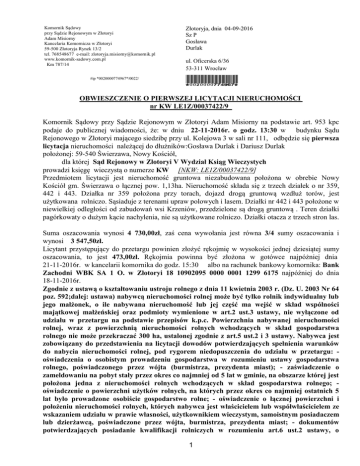 1 OBWIESZCZENIE O PIERWSZEJ LICYTACJI NIERUCHOMOŚCI