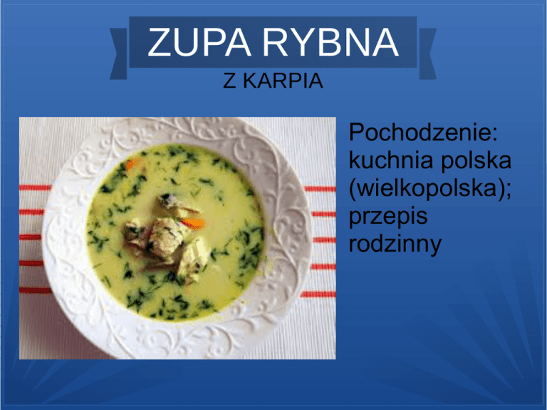 ZUPA RYBNA Z KARPIA Pochodzenie: kuchnia polska (wielkopolska); przepis rodzinny PRODUKTY PRODUKTY PRZYGOTOWANIE SMACZNEGO !