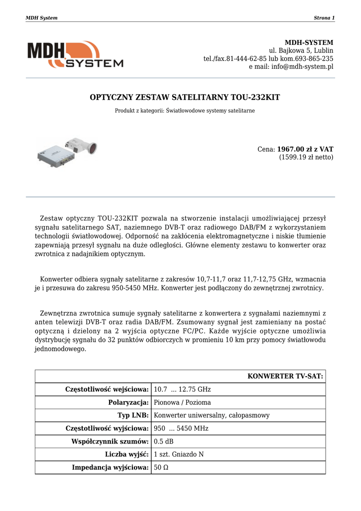 OPTYCZNY ZESTAW SATELITARNY TOU-232KIT - Mdh