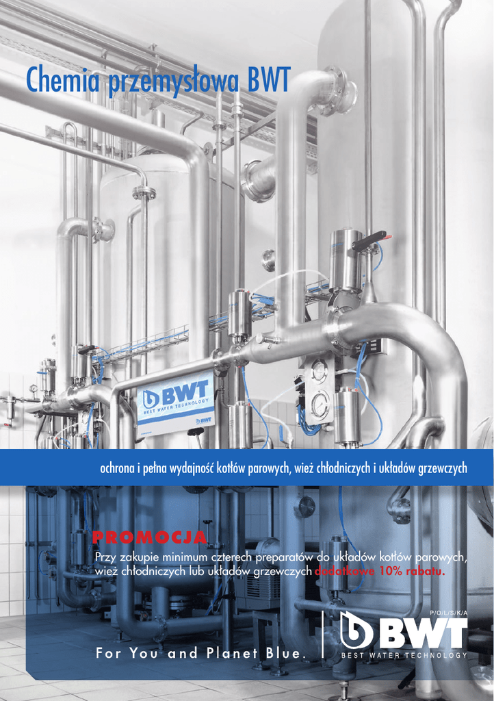 Chemia przemysłowa BWT ochrona i pełna wydajność kotłów parowych, wież chłodniczych i układów grzewczych PROMOCJA Przy zakupie minimum czterech preparatów do układów kotłów parowych, wież chłodniczych lub układów grzewczych dodatkowe 10% rabatu. 2 | PROMOCJA: 16.02 - 30.04.2015 Chemia przemysłowa BWT Skuteczna i sprawdzona ochrona układów kotłów parowych, wież chłodniczych, układów grzewczych. PROMOCJA Przy zakupie minimum czterech preparatów do układów kotłów parowych, wież chłodniczych lub układów grzewczych dodatkowe 10% rabatu. Preparaty chemiczne BWT dla przemysłu to: ochrona powierzchni poprzez tworzenie filmu pasywującego; ochrona przed korozją wżerową, korozją galwaniczną i elektrochemiczną; utrzymanie czystych powierzchni; wiązanie tlenu; uzdatnianie linii kondensatu; preparaty przeznaczone do produkcji pary, która ma kontakt z żywnością; czynniki bakteriobójcze. Warunki promocji: Rabat jest dodawany do rabatu danej firmy zgodnie z warunkami współpracy. Promocja jest ważna od 16.02 do 30.04.2015 lub do wyczerpania zapasów. Zakupione w promocji produkty nie podlegają zwrotowi. Produkty mogą różnić się od zaprezentowanych na zdjęciach. W przypadku promocji obowiązują Ogólne Warunki Sprzedaży i Dostaw BWT Polska Sp. z o.o. oraz Ogólne Warunki Promocji BWT Polska Sp. z o.o. dostępne na stronie www.bwt.pl Dodatkowe informacje i zamówienia: BWT Polska Sp z o.o. • ul.Połczyńska 116 • 01 – 304 Warszawa Urszula Miazga • tel +48 22 533 57 32 • [email protected] |3 Obszary stosowania: PRODUKCJA PARY Wielofunkcyjne Jedna funkcja Nie dla produktów spożywczych Dla produktów spożywczych z aminami Dla produktów spożywczych bez amin Wiązanie tlenu Fosforany Alkalizacja BWT SH-1003 BWT SH-1002 BWT SH-1001 BWT SH-7001 BWT SH-2001 Aminy BWT SH-7002 (non FG) BWT SH-7003 (FG) UKŁADY ZAMKNIĘTE Niska temperatura Układ grzewczy Uzdatnianie Multimetal bez aluminum Aluminium Woda niezmiękczona BWT CC-1002 BWT CC -1001 BWT CC-1003 Odszlamianie Biocydy BWT CC-1001 (aluminium) BWT CC-1002 (bez aluminium) BWT Bio A2 BWT Bio D2 Hermetic multimetal bez aluminum Non hermetic multimetal bez aluminum Non hermetic multimetal z aluminum BWT SH-1004 lub BWT SH 1005 BWT CC-1002 BWT CC-1001 UKŁADY CHŁODZENIA Ochrona przeciw powstawaniu kamienia Ochrona antykorozyjna i przeciwdepozytowa Woda surowa lub zmiękczona Woda częściowo zmiękczona BWT CS-2001 BWT CS - 1003 lub BWT CS - 1002 Woda po R/O Woda agresywna BWT CS-1001 BWT CS-1003 Dezynfekcja Dezynfekcja szokowa BWT Bio A2 lub BWT Bio D2 * Zastrzegamy sobie możliwość błędów w opisie i błędów drukarskich. Zastrzegamy sobie prawo zmian parametrów technicznych bez uprzedniego powiadomienia. O firmie BWT Grupa Best Water Technology to europejski lider technologii uzdatniania wody oraz 2.700 pracowników m.in doświadczonych serwisantów, instalatorów projektantów, architektów i ekspertów oraz sieć partnerów współpracujących. Firma BWT to także dział R & D (badania & rozwój), który, stosując najnowocześniejsze metody, opracowuje nowe procesy i materiały, stawiając sobie za cel tworzenie najbardziej ekologicznych i ekonomicznych produktów. Najważniejszym aspektem tej pracy jest zmniejszenie zużycia materiałów eksploatacyjnych oraz energii, a tym samym redukcja emisji CO2. Firma BWT wyznacza standardy tam, gdzie chodzi o uzdatnianie wody, niezależnie od tego czy jest to wejście wody pitnej w instalacji domowej („Point of Entry”), czy miejsce poboru wody („Point of Use”). Proponowane przez nas rozwiązania sprawdzają się zarówno podczas uzdatniania wody pitnej, mineralnej czy ultraczystej dla farmacji, jak i podczas uzdatniania wody basenowej, grzewczej, procesowej kotłowej i lodowej oraz wykorzystywanej w klimatyzacji. Dzięki Więcej informacji: BWT Polska Sp. z o.o. ul. Połczyńska 116 • 01 – 304 Warszawa tel.: + 48 22 533 57 00 • e-mail: [email protected] www.bwt.pl znajomości nowych technologii uzdatniania wody gwarantujemy naszym klientom najwyższy wymiar bezpieczeństwa, higienę i zdrowie. Stosowane przez nas ® rozwiązania to między innymi: SEPTRON , moduł do elektrodejonizacji (EDI) o światowym zasięgu ze spiralnymi zwojami, proces MDA (aktywacja tlenku manganu) do skutecznego usuwania manganu, dwubiegunowa technologia AQA total do ochrony przed osadami wapnia bez użycia chemikaliów, SANISAL – sól do regeneracji zmiękczaczy mająca jednocześnie właściwości dezynfekujące oraz nowa rewolucyjna technologia Mg2+ poprawiająca smak filtrowanej wody, oraz kawy i herbaty. Stosując jedyne w swoim rodzaju membrany o wysokiej wydajności, BWT przyczynia się do czystego zasilania energetycznego na miarę XXI wieku. Nasze hasło przewodnie BWT For You and Planet Blue wyraża dążenie do zaoferowania klientom najlepszych produktów, urządzeń, i usług w dziedzinie uzdatniania wody, przy jednoczesnym zapewnieniu ochrony światowych zasobów znajdujących się na naszej niebieskiej planecie.