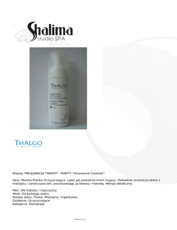Rodzaj: PIELĘGNACJA TWARZY - PURITY "Zmywacze Czystość" Opis: Morska Pianka Oczyszczająca. Lekki jak powietrze krem myjący. Dokładnie oczyszcza skórę z makijażu i zanieczyszczeń, pozostawiając ją świeżą i matową. Wersja detaliczna. Płeć: Dla kobiety i mężczyzny Wiek: Do każdego wieku Rodzaj skóry: Tłusta, Mieszana, Trądzikowa Działanie: Oczyszczające Kategoria: Demakijaż Strona 1 z 2 Strona 2 z 2