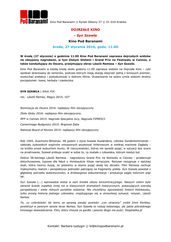DOJRZAŁE KINO_27.01.2016_Syn Szawła