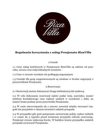 Regulamin korzystania z usług Pensjonatu RizaVilla
