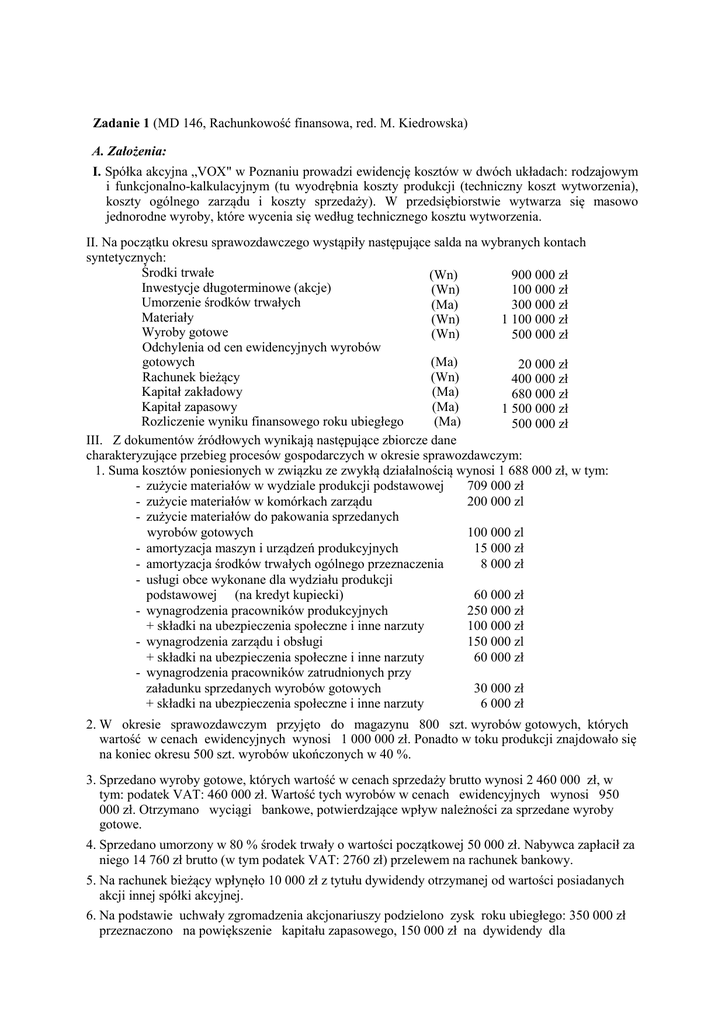 Zadanie 1 (MD 146, Rachunkowość finansowa, red. M. Kiedrowska