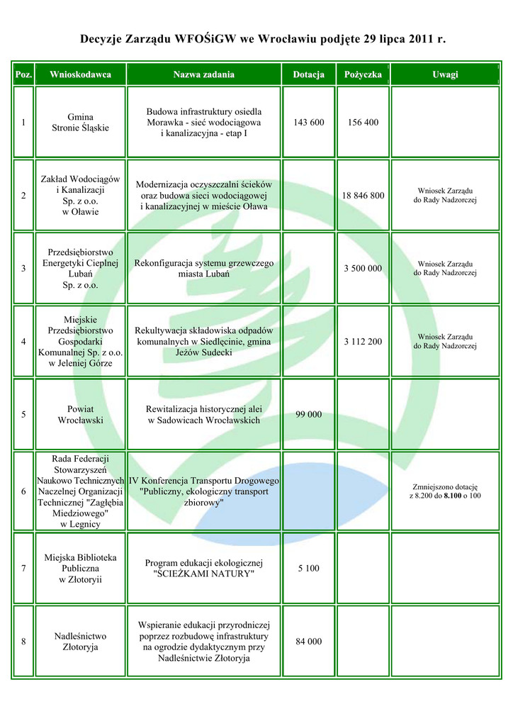 Decyzje Zarządu - WFOŚiGW we Wrocławiu