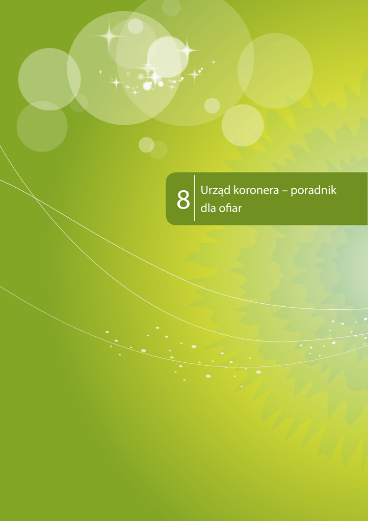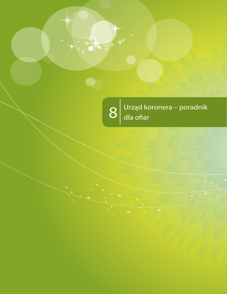 8 Urząd koronera – poradnik dla ofiar 49 8: Urząd koronera – poradnik dla ofiar Czego można oczekiwać od urzędu koronera? Koroner to osoba, która bada przyczyny nagłej, niewyjaśnionej lub gwałtownej śmierci. Poniższe podsumowanie wyjaśnia, czego można oczekiwać od urzędu koronera w przypadku śmierci członka rodziny lub przyjaciela w wyniku przestępstwa. Obowiązki koronera obejmują następujące obszary działania: • identyfikacja – identyfikacja ciała zmarłej osoby to rzecz przykra dla członków rodziny lub przyjaciół. W niektórych przypadkach, jeżeli jest to zbyt przykre dla członka rodziny lub przyjaciela, istnieje możliwość, aby dokonał tego ktoś inny w zastępstwie. 50 • sekcja zwłok – może się okazać, że koroner musi przeprowadzić sekcję zwłok. Jest to specjalne medyczne badanie ciała zmarłego. Koronerzy są świadomi obaw, jakie mają członkowie rodziny lub przyjaciele zmarłego odnośnie do sekcji zwłok. W związku z tym informują oni, gdzie można zasięgnąć informacji, które pomogą w zrozumieniu przebiegu tego badania. Koronerzy udostępniają wyniki przeprowadzonego badania na żądanie i za ustaloną opłatą; • wydanie ciała do pogrzebu – koronerzy dokładają wszelkich starań, aby wydać ciało zmarłego do pogrzebu bez zbędnych opóźnień. Udzielają oni informacji o przewidywanej dacie i godzinie wydania ciała; • dochodzenie w celu ustalenia przyczyny zgonu – koronerzy przeprowadzają dochodzenia w celu ustalenia przyczyny zgonu w możliwie jak najkrótszym czasie po śmierci ofiary. Takie dochodzenie jest śledztwem, w trakcie którego bada się przyczyny nagłej, niewyjaśnionej lub gwałtownej śmierci. Policja zazwyczaj powiadamia najszybciej jak to możliwe o dacie, godzinie i miejscu dochodzenia. W trakcie dochodzenia koroner może wyjaśnić, czego ono dotyczy. Koroner stara się być możliwie najbardziej delikatny. Można np. PORADNIK DLA OFIAR i przewodnik po systemie wymiaru sprawiedliwości karnej opuścić salę sądową w momencie składania zeznań przez patologa (specjalny doktor, który przygotowuje raport z badania ciała podczas sekcji zwłok); • dokumenty – po zakończeniu dochodzenia kopie takich dokumentów, jak raporty z sekcji zwłok są dostępne w biurze koronera za ustaloną opłatą. W przypadku niektórych zgonów, np. młodych ludzi lub dzieci, koroner może udzielić informacji na temat lokalnych grup i sieci wsparcia, z którymi można się skontaktować w celu uzyskania pomocy. Należą do nich pracownicy socjalni w wielu szpitalach oraz pracownicy poradni pomagających osobom w żałobie. Nie należy to do bezpośrednich czynności wykonywanych przez koronera. Jeśli nie spełnimy Państwa oczekiwań W celu uzyskania ogólnych informacji na temat naszych usług prosimy o kontakt z właściwym biurem koronera. Imiona i nazwiska, adresy oraz numery telefonów koronerów są udostępniane przez lokalne organy władzy. Są one również dostępne na stronie internetowej www.coroners.ie. Dodatkowe informacje można również uzyskać, kontaktując się z osobami pracującymi w ośrodku wymienionym poniżej. Coroner Service Implementation Team Athlumney House IDA Business Park Johnstown Navan Co Meath Tel.: 046 909 1323 Faks: 046 905 0560 E-mail: csitmail @justice.ie BIURO DO SPRAW OFIAR PRZESTĘPSTW - Ministerstwo Sprawiedliwości i Reformy Prawa 51 Rola koronera Koronerzy badają przyczyny nagłych, niewyjaśnionych, gwałtownych lub nienaturalnych zgonów na potrzeby wystawienia świadectwa zgonu. Może się okazać, że muszą oni przeprowadzić sekcję zwłok, a po niej czasami dochodzenie. Jest to ważna usługa publiczna, w szczególności dla rodziny i przyjaciół zmarłego. Dochodzenie jest śledztwem prowadzonym jawnie przez koronera, a czasami ławę przysięgłych. Celem dochodzenia jest: • ustalenie faktów dotyczących zgonu; • podanie ustalonych faktów do publicznej wiadomości; oraz • ustalenie: • tożsamości zmarłego; • daty i miejsca zgonu; oraz • przyczyny zgonu. Chociaż koroner lub ława przysięgłych mogą przedstawić ogólne zalecenie mające na celu zapobieżenie podobnym zgonom, to podejmowanie decyzji o winie lub niewinności sprawców zgonu oraz o uznaniu zgonu za przestępstwo karne nie należy do ich obowiązków. Koroner jest niezależny w wykonywaniu swoich obowiązków. Weryfikacja decyzji koronera jest możliwa wyłącznie na drodze prawnej. Istnieje np. możliwość odwołania się do sądu wyższego za pomocą wniosku o ponowne rozpatrzenie sprawy. Koronerzy rozumieją, że chociaż ich śledztwo jest niezbędne, to może ono powodować zdenerwowanie i traumę członków rodziny ofiary. Koronerzy wykonują swoją pracę w sposób możliwie najbardziej delikatny i z zachowaniem szacunku wobec osoby zmarłej, rodziny pogrążonej w żałobie oraz innych osób poruszonych zgonem ofiary. (Data publikacji: czerwiec 2010 r.) 52 PORADNIK DLA OFIAR i przewodnik po systemie wymiaru sprawiedliwości karnej