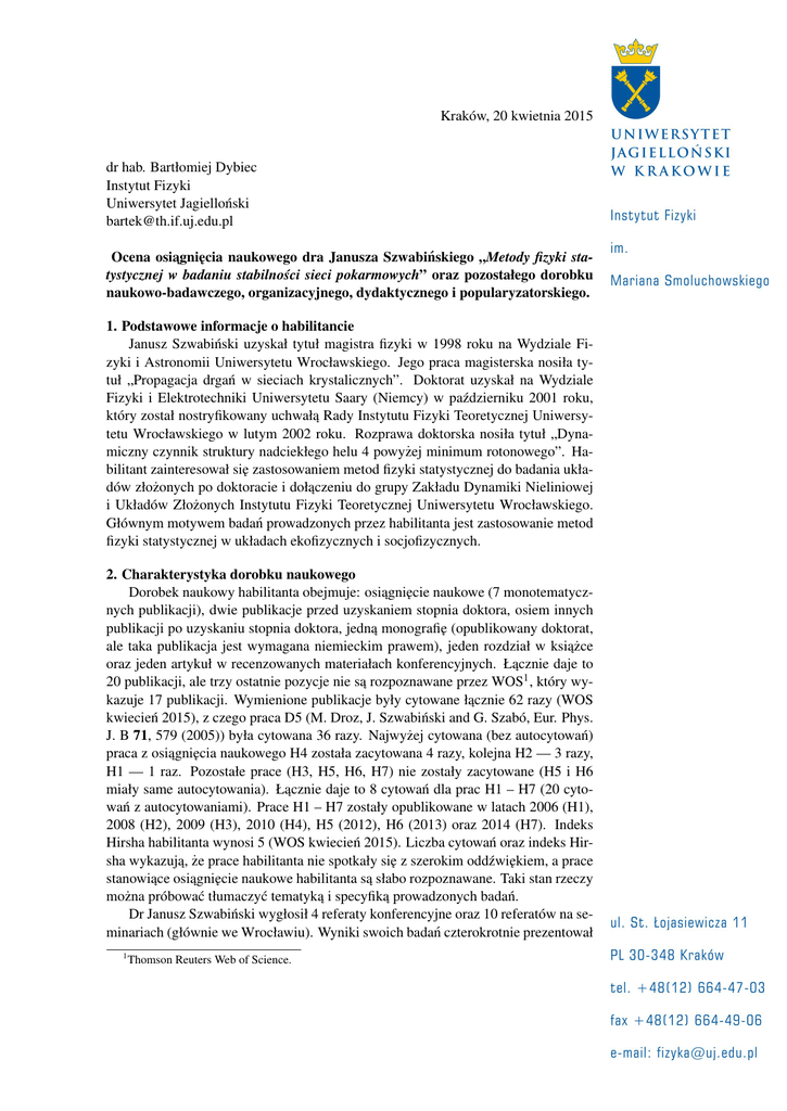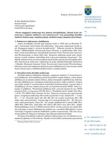Recenzja - prof. B.Dybiec - Instytut Fizyki Teoretycznej
