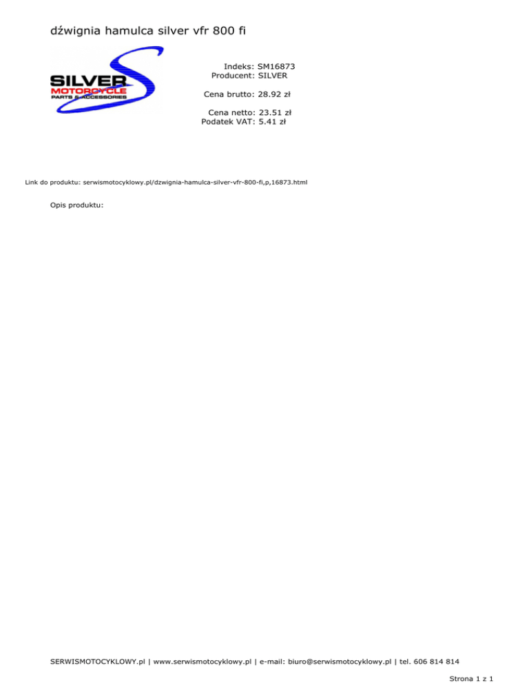 dźwignia hamulca silver vfr 800 fi Indeks: SM16873 Producent: SILVER Cena brutto: 28.92 zł Cena netto: 23.51 zł Podatek VAT: 5.41 zł Link do produktu: serwismotocyklowy.pl/dzwignia-hamulca-silver-vfr-800-fi,p,16873.html Opis produktu: SERWISMOTOCYKLOWY.pl | www.serwismotocyklowy.pl | e-mail: [email protected] | tel. 606 814 814 Strona 1 z 1