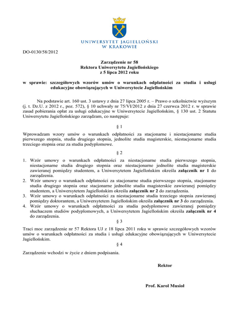 Zarządzenie nr 58 Rektora UJ z 5 lipca 2012 r.