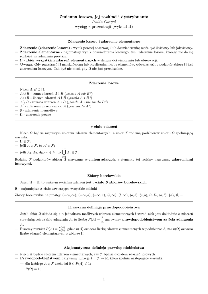 Zmienna losowa, jej rozkład i dystrybuanta Izolda Gorgol wyciąg z