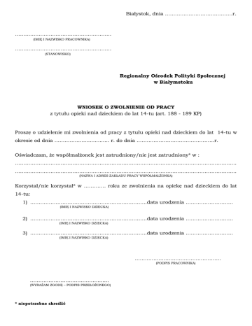 Wniosek o zwolnienie od pracy z tytułu opieki nad dzieckiem
