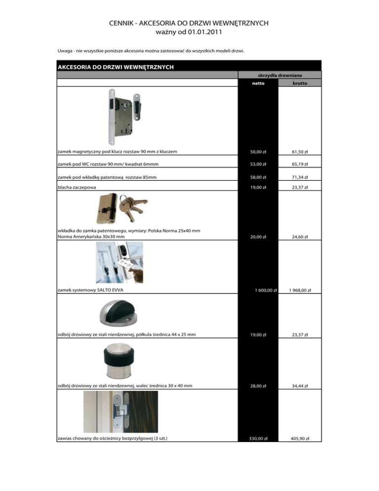 AKCESORIA DO DRZWI WEWNĘTRZNYCH ważny od