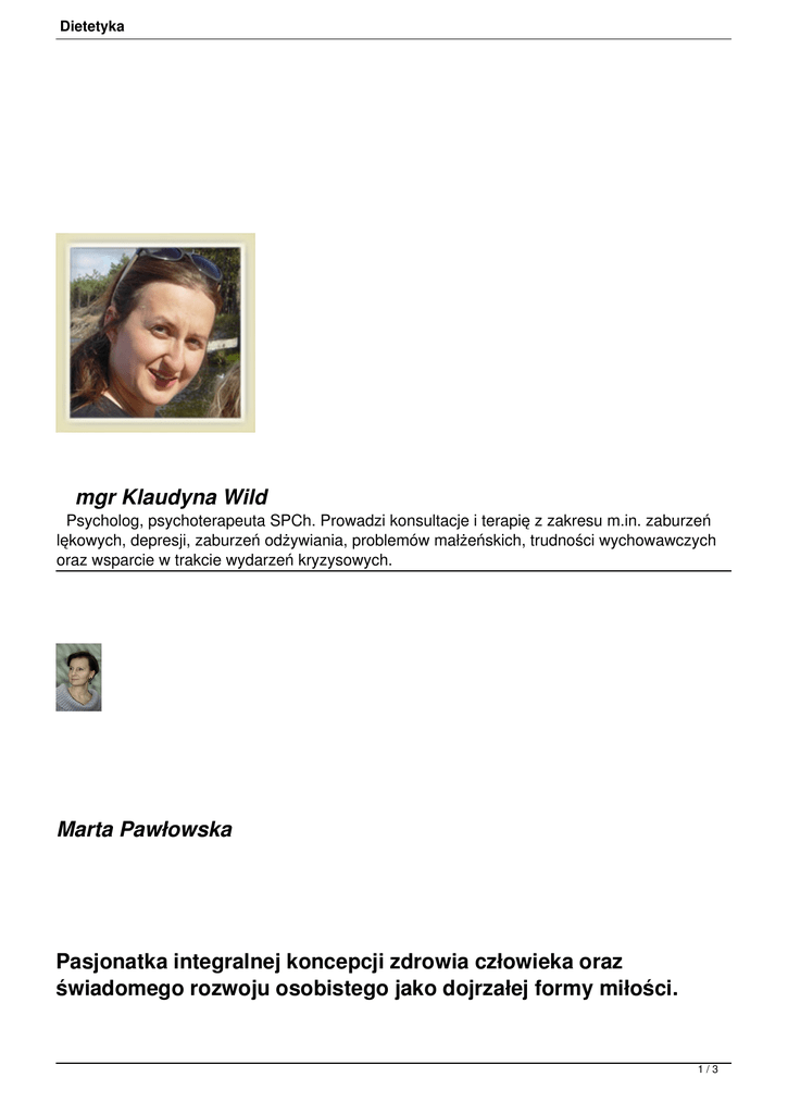 mgr Klaudyna Wild Marta Pawłowska Pasjonatka integralnej