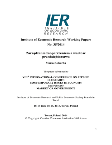 Institute of Economic Research Working Papers No. 35/2014 Zarządzanie zaopatrzeniem a wartość przedsiębiorstwa Maria Kukurba The paper submitted to VIIIth INTERNATIONAL CONFERENCE ON APPLIED ECONOMICS CONTEMPORARY ISSUES IN ECONOMY under the title MARKET OR GOVERNMENT? Institute of Economic Research and Polish Economic Society Branch in Toruń 18-19 June 18-19, 2015, Toruń, Poland Toruń, Poland 2014 © Copyright: Creative Commons Attribution 3.0 License 1 Maria Kukurba [email protected] Politechnika Warszawska Wydział Inżynierii Produkcji Instytut Organizacji Systemów Produkcyjnych ul. Narbutta 86 02-524 Warszawa Zarządzanie zaopatrzeniem a wartość przedsiębiorstwa JEL: G32, M100 Słowa kluczowe: zarządzanie zaopatrzeniem, zakupy, zarządzanie wartością, EVA, łańcuch wartości, perspektywa finansowa. Streszczenie: Celem artykułu jest zweryfikowanie związków zarządzania zaopatrzeniem ze strategią przedsiębiorstwa oraz wartością przedsiębiorstwa. Punktem wyjścia do prowadzonych analiz są badania przeprowadzone wśród polskich menedżerów, dotyczące roli zakupów w przedsiębiorstwie, w 2008 i 2010 roku. Zastosowano podejście dedukcyjne w którym odwołano się do aktualnie istniejącej wiedzy na temat zarządzania strategicznego i pomiaru wartości przedsiębiorstwa. Wykorzystano modele mapy strategii Nortona i Kaplana, model czynników wartości Waltersa oraz EVA. Najważniejsze wnioski wynikające z przeprowadzonych analiz są następujące: zarządzanie zaopatrzeniem jest ściśle powiązane z łańcuchem wartości całego przedsiębiorstwa oraz wszystkimi perspektywami strategicznymi, nośniki wartości istotne dla zarządzania zaopatrzeniem wpływają na wartość przedsiębiorstwa w wymiarze operacyjnym i strategicznym. Przeprowadzone analizy potwierdzają, że przywiązywanie najmniejszej wagi do strategicznego zarządzania zakupami i zaopatrzeniem przez polskich menedżerów jest nieuzasadnione i ma negatywny wpływ na budowanie wartości przedsiębiorstw w perspektywie długoterminowej Wprowadzenie 2 Ewolucja, której przez kilkadziesiąt lat podlegał proces zakupów, doprowadziła do wzrostu jego znaczenia i wpływu na realizację strategicznych celów przedsiębiorstw (Kardasz, 2008, s.10.). W celu określenia praktyk polskich przedsiębiorstw w strategicznym zarządzaniu zakupami zostały przeprowadzone badania przez Marketplanet oraz Harvard Business Review Polska przy udziale Polskiego Stowarzyszenia Managerów Logistyki(PSML). W ramach badania zebrano ankiety od 148 firm oraz przeprowadzono 10 wywiadów. Wśród przedsiębiorstw, które wyraziły zgodę na rozmowę o roli zakupów, znalazły się miedzy innymi: Koksownia Przyjaźń, Polpharma, Vaco, Hajduk, Fabryka Mebli GAWIN i Grupa Partner. Badania przeprowadzone przez PSML & Marketplanet odpowiednio w 2008 i 2011 roku wskazują na wiodącą rolę zakupów w osiąganiu sukcesów przez przedsiębiorstwo. Wyniki badania dotyczące wpływu poszczególnych obszarów na sukces przedsiębiorstwa widoczne są na wykresie 1.. Respondenci w 2008 roku wskazują zdecydowany wpływ sprzedaży na sukces przedsiębiorstwa w 2008 i 2011 roku, ale kolejnymi wskazanymi obszarami są odpowiednio ZZL- 72% i zakupy - 42%. W 2011 roku następuje zdecydowana zmiana kolejności tych dwóch obszarów na korzyść zakupów, odpowiednio zakupy - 67% i ZZL - 48%. Wykres 1. Kluczowe obszary mające wpływ na sukces przedsiębiorstwa Źródło: Kardasz: (2012, s. 27), Szymoszek, (2014, ss. 19-20). Kolejny wykres prezentuje wyniki dotyczące postrzegania roli zakupów w przedsiębiorstwie ze względu na poziom zarządzania. Zdecydowanie 3 dominujące jest wskazanie dotyczące roli operacyjnej zakupów przez ponad 50% respondentów w 2008 i 2011 roku oraz wskazanie na rosnącą rolę taktyczną, zmiana z 17% w 2008 na 28% w 2011 przy spadku znaczenia roli strategicznej z 25 % w 2008 roku do 16% w 2011 roku. Wykres 2. Rola zakupów w polskich przedsiębiorstwach Źródło: Kardasz (2012 s. 23), Szymoszek (2014, ss. 19-20) Przytoczone wyniki badań potwierdzają rosnące znaczenie i coraz większą świadomość osób odpowiedzialnych za funkcjonowanie zakupów w przedsiębiorstwach polskich. Nie oznacza to jednak, że obecnie nastąpiła istotna zmiana jakościowa w podejściu do zarządzania zakupami. Pisze o tym w swoim artykule Rutkowski, podając najważniejsze błędy popełniane przez polskich menedżerów zakupów (Rutkowski, 2013, s.36): • "uznanie za główny cel działań redukcję wąsko rozumianych kosztów zakupów, • wiarę w sukces postaw konfrontacyjnych w negocjacjach z dostawcami, • wąską specjalizację w zarządzaniu kategoriami zakupowymi, • brak pogłębionej wiedzy finansowej oraz myślenia kategoriami rentowności i wartości firmy, • słabą znajomość innych dyscyplin zarządzania (operacje, logistyka, marketing, • rachunkowość…), 4 • • niezrozumienie idei łańcucha dostaw i roli relacji partnerskich, brak orientacji strategicznej". W tym samym artykule Rutkowski identyfikuje podstawowe bariery utrudniające strategiczne postrzeganie zakupów. Poza typowymi problemami związanymi z komunikacją i współpracą pomiędzy różnymi pionami lub działami wymienia silne przyzwyczajenie jednostek merytorycznych do postrzegania roli zakupów jako wyłącznie ograniczoną do realizacji zamówień oraz niewystarczającą kreatywność pracowników i brak umiejętności szerszego lub niestandardowego spojrzenia na zagadnienie (Rutkowski, 2013, s.43). Z pewnością można stwierdzić, że są obszary co do których nie można mieć wątpliwości odnośnie ich związku z budowaniem wartości przedsiębiorstwa, co jest jednym z wymiarów strategicznego zarządzania przedsiębiorstwem. Nie zawsze jednak te związki są tak oczywiste i jak widać, jednym z takich obszarów jest zarządzanie zakupami. Literatura przedmiotu dosyć obszernie opisuje metodykę zarządzania wartością prze