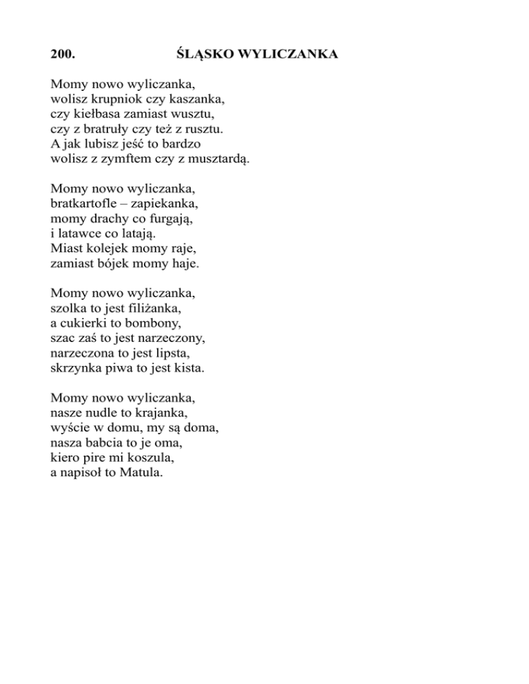 200. ŚLĄSKO WYLICZANKA Momy nowo wyliczanka, wolisz