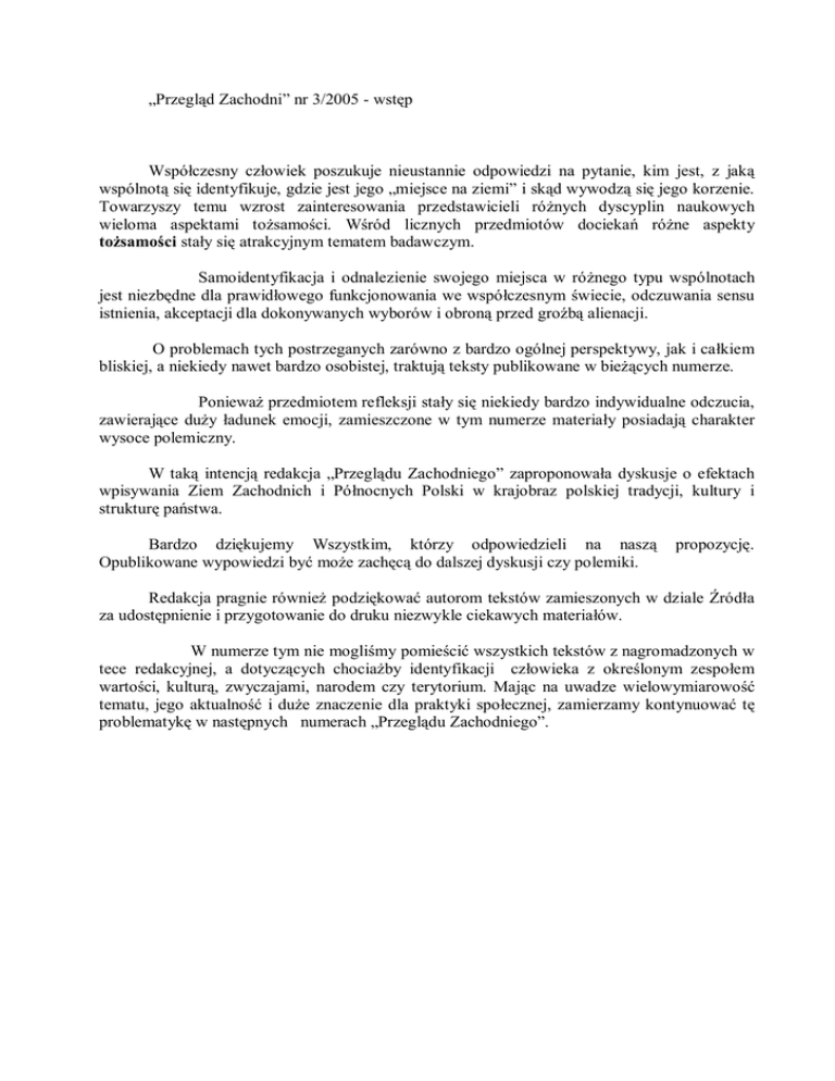 „Przegląd Zachodni” nr 3/2005 - wstęp Współczesny człowiek