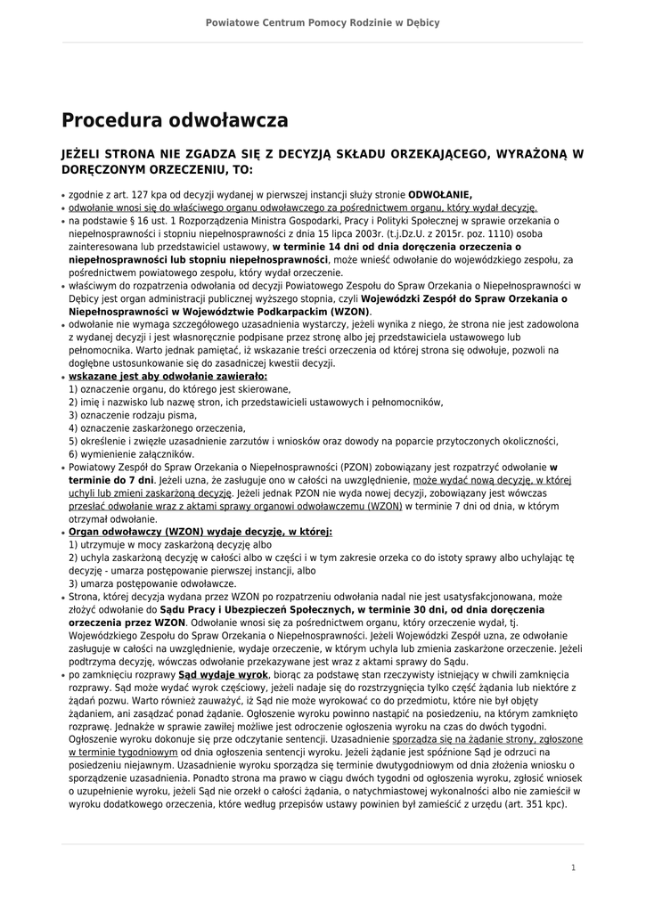 Procedura odwoławcza - Powiatowe Centrum Pomocy Rodzinie w