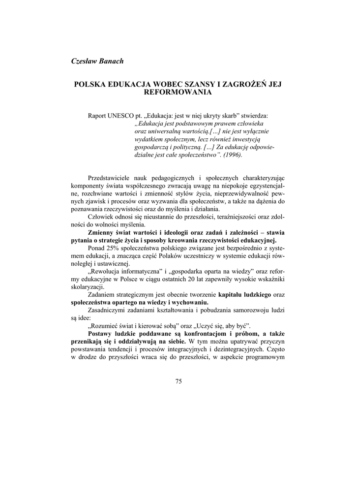 Polska edukacja wobec szansy i zagrożen jej reformowania