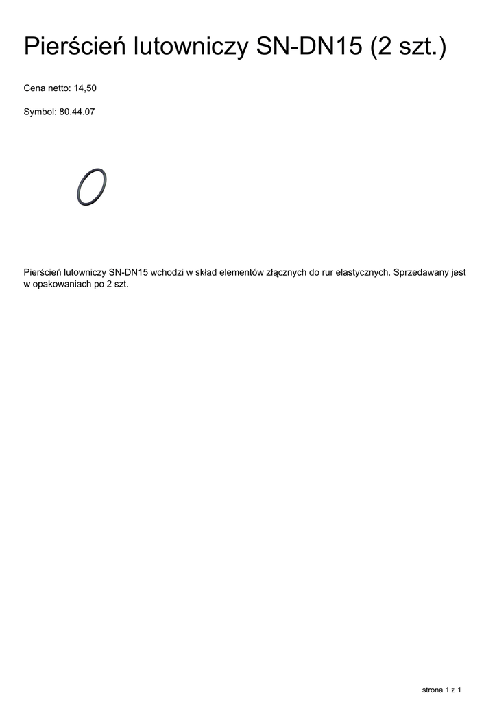 Pierścień lutowniczy SN-DN15 (2 szt.) Cena netto: 14,50 Symbol: 80.44.07 Pierścień lutowniczy SN-DN15 wchodzi w skład elementów złącznych do rur elastycznych. Sprzedawany jest w opakowaniach po 2 szt. strona 1 z 1