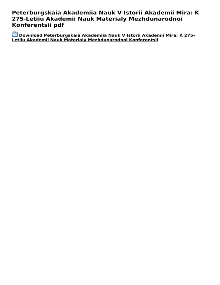 Peterburgskaia Akademiia Nauk V Istorii Akademii Mira: K 275
