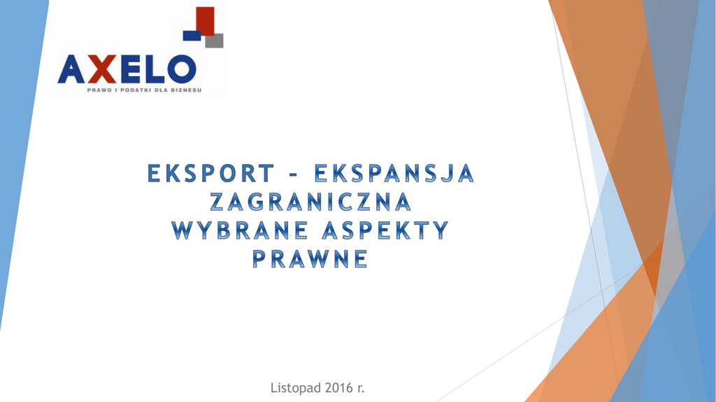 Listopad 2016 r. FORMY WEJŚCIA NA RYNEK ZAGRANICZNY - STRUKTURY PRAWNE DZIAŁALNOŚCI UMOWY – NAJWAŻNIEJSZE KLAUZULE CZYLI NA CO NALEŻY ZWRACAĆ SZCZEGÓLNĄ UWAGĘ FORMY WEJŚCIA NA RYNEK ZAGRANICZNY - STRUKTURY PRAWNE DZIAŁALNOŚCI JAKI MODEL WEJŚCIA NA RYNEK JEST DLA NAS NAJBARDZIEJ OPTYMALNY? EKSPORT POŚREDNI EKSPORT BEZPOŚREDNI JOINT VENTURE SPÓŁKA CELOWA LICENCJA FORMY WEJŚCIA NA RYNEK ZAGRANICZNY - STRUKTURY PRAWNE DZIAŁALNOŚCI JAKI MODEL WEJŚCIA NA RYNEK JEST DLA NAS NAJBARDZIEJ OPTYMALNY? EKSPORT POŚREDNI FORMY WEJŚCIA NA RYNEK ZAGRANICZNY - STRUKTURY PRAWNE DZIAŁALNOŚCI JAKI MODEL WEJŚCIA NA RYNEK JEST DLA NAS NAJBARDZIEJ OPTYMALNY? eksport bezpośredni z kraju EKSPORT BEZPOŚREDNI eksport bezpośredni z kraju realizowany przy współpracy agenta zagranicznego eksport bezpośredni via własna sieć dystrybucyjna eksport bezpośredni z kraju z wykorzystaniem własnego przedstawicielstwa za granicą FORMY WEJŚCIA NA RYNEK ZAGRANICZNY - STRUKTURY PRAWNE DZIAŁALNOŚCI JAKI MODEL WEJŚCIA NA RYNEK JEST DLA NAS NAJBARDZIEJ OPTYMALNY? JOINT VENTURE WSPÓLNE PRZEDSIĘWZIĘCIE FORMY WEJŚCIA NA RYNEK ZAGRANICZNY - STRUKTURY PRAWNE DZIAŁALNOŚCI JAKI MODEL WEJŚCIA NA RYNEK JEST DLA NAS NAJBARDZIEJ OPTYMALNY? SPÓŁKA CELOWA PODMIOT LOKALNY UTWORZENIE LUB AKWIZYCJA FORMY WEJŚCIA NA RYNEK ZAGRANICZNY - STRUKTURY PRAWNE DZIAŁALNOŚCI JAKI MODEL WEJŚCIA NA RYNEK JEST DLA NAS NAJBARDZIEJ OPTYMALNY? LICENCJA UDOSTĘPNIANIE WARTOŚCI NIEMATERIALNYCH I PRAWNYCH W TYM KNOW-HOW UMOWY - CZYLI NA CO NALEŻY ZWRACAĆ SZCZEGÓLNĄ UWAGĘ Świadome kształtowanie treści umowy celem uniknięcia dotkliwych skutków; Forma umowy; Umowne must have, czyli rekomendowane klauzule w kontraktach eksportowych; Minimalizacja ryzyka kontraktowego zapłatą ceny/wynagrodzenia. związanego z UMOWY - CZYLI NA CO NALEŻY ZWRACAĆ SZCZEGÓLNĄ UWAGĘ Świadome kształtowanie treści umowy celem uniknięcia dotkliwych skutków: Określenie prawa właściwego dla umowy; Określenie sądu właściwego dla rozstrzygania sporów; Zastosowanie Konwencji Wiedeńskiej. Skutki braku regulacji w powyższym zakresie? UMOWY - CZYLI NA CO NALEŻY ZWRACAĆ SZCZEGÓLNĄ UWAGĘ Forma umowy – kilka uwag: Forma pisemna; Forma dokumentowa; Forma ustna; Zawarcie umowy w sposób dorozumiany. UMOWY - CZYLI NA CO NALEŻY ZWRACAĆ SZCZEGÓLNĄ UWAGĘ Umowne must have, czyli rekomendowane klauzule w kontraktach eksportowych: Klauzula prawa właściwego i klauzula jurysdykcyjna; Prawidłowo określony przedmiot umowy/specyfikacja (ilość, rodzaj); Warunki dostawy (Incoterms 2010); Termin dostawy; Ustalenie ceny (klauzule rewizji/waloryzacji ceny); Klauzula przewidująca kary umowne; Klauzule zabezpieczające płatności; Klauzule dotyczące postępowania reklamacyjnego; Klauzule dotyczące gwarancji (długości i warunków); Klauzula poufności; Klauzula salwatoryjna. UMOWY - CZYLI NA CO NALEŻY ZWRACAĆ SZCZEGÓLNĄ UWAGĘ Minimalizacja ryzyka kontraktowego związanego ceny/wynagrodzenia – zabezpieczenie płatności: z zapłatą Przedpłata; Gwarancja bankowa wynagrodzenia; Akredytywa. lub ubezpieczeniowa zapłaty D ZIĘK U JEMY ZA U WA GĘ KONTAKT Edyta Rajchel Radca prawny Radosław Ostrowski Adwokat www.axelo.pl AXELO Ostrowski Domagalski i Wspólnicy sp. k. Siedziba Rzeszów: Karowa Office, Al. Tadeusza Rejtana 20 (III p.), 35-315 Rzeszów, Polska T: +48 17 230 65 80, F: +48 17 230 65 85, E: [email protected] | KRS: 0000535885 Sąd Rejonowy w Rzeszowie, NIP: 813-369-94-40, REGON: 360354288 Biuro Kraków: Biuromax, ul. Radzikowskiego 3 (I p.), 31-305 Kraków, Polska | T: +48 12 395 77 64, F: +48 12 395 77 65 Biuro Nowy Sącz: MMC Brainville, ul. Myśliwska 2 lok. 241, 33-300 Nowy Sącz, Polska | T: +48 18 531 35 50, F: +48 12 395 77 65 Biuro Mielec: Inkubator Nowych Technologii IN-Tech 2, ul. Wojska Polskiego 3 lok. 211, 39-300 Mielec, Polska | T: +48 17 227 63 23, F: +48 17 230 65 85 AXELO Prawo i Podatki | AXELO Corporate Finance | Axelo Business Services | AXELO UKRAINA © 2016 AXELO Ostrowski Domagalski i Wspólnicy sp. k.