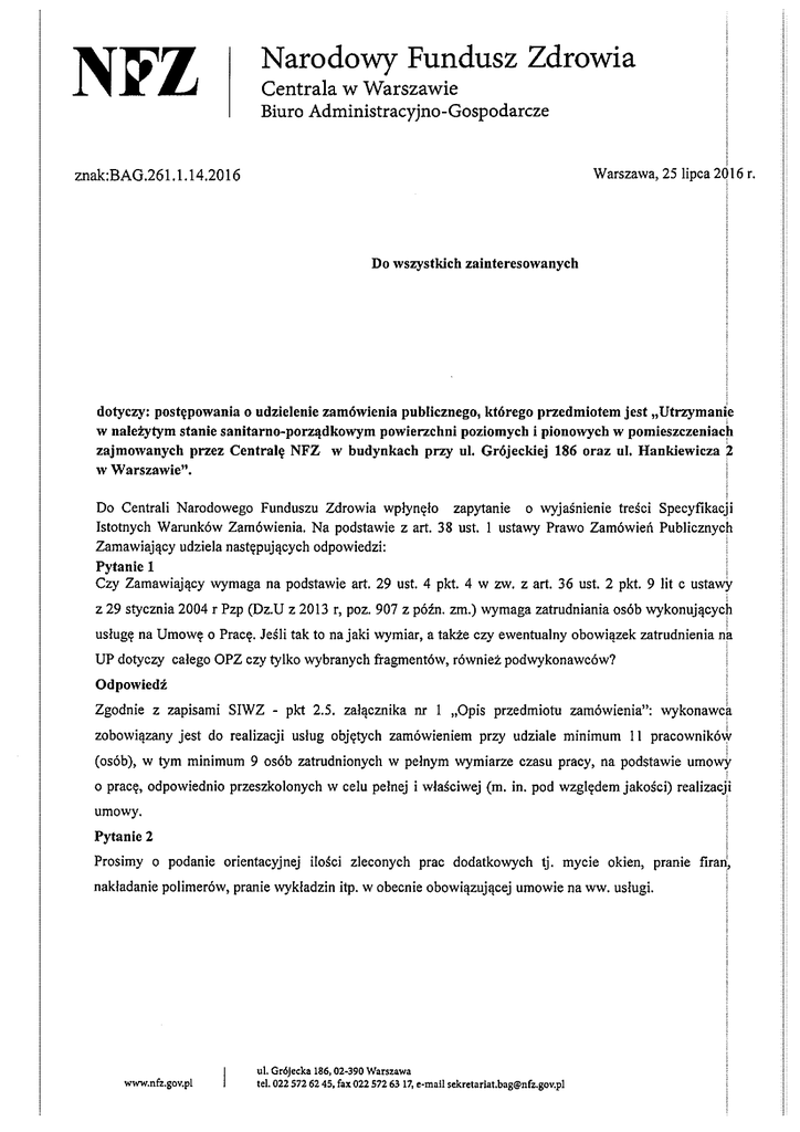 Odpowiedzi na zapytania: 25-07-2016