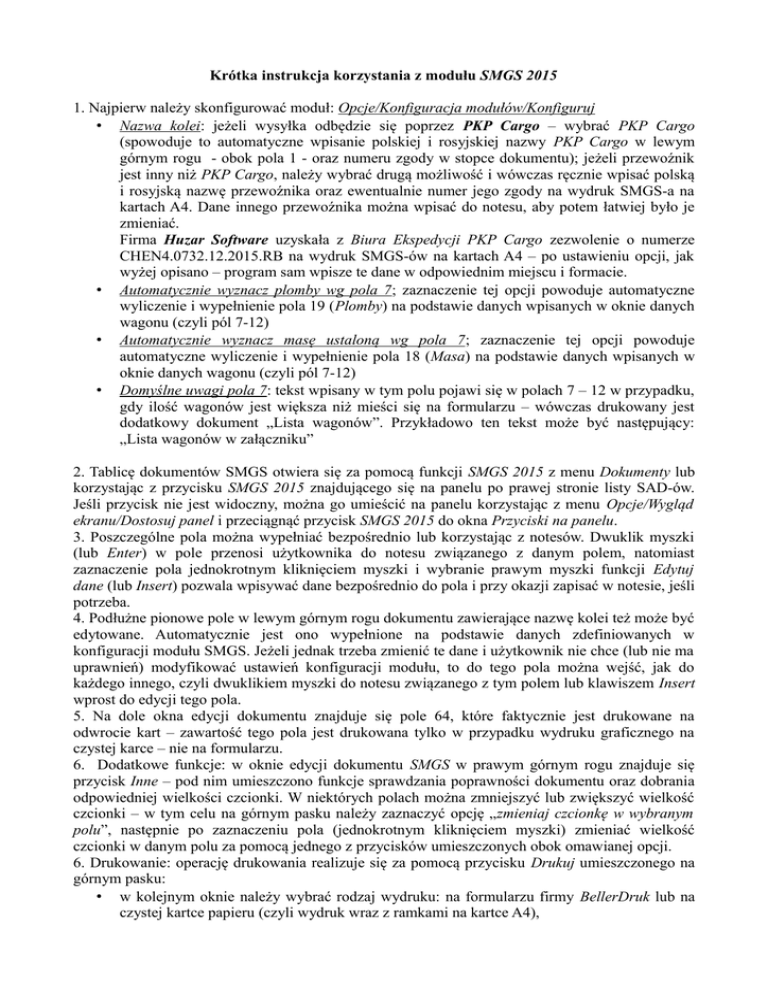 Krótka instrukcja korzystania z modułu SMGS 2015